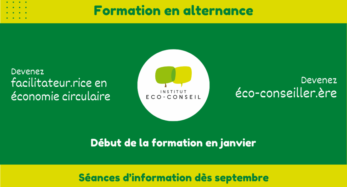 En 30 ans, l’Institut Eco-conseil a formé plus de 1000 éco-conseiller.ères. Ces Ambassadeur.rice.s de la Transition partagent une ambition et un idéal communs: contribuer à cette nécessaire transformation de nos modes de vie (mobilité, urbanisme, consommation, énergie, alimentation…) et construire un futur positif et durable partout où c’est nécessaire (administrations publiques, entreprises privées, bureaux d’études, associations ou en tant qu’indépendant….).